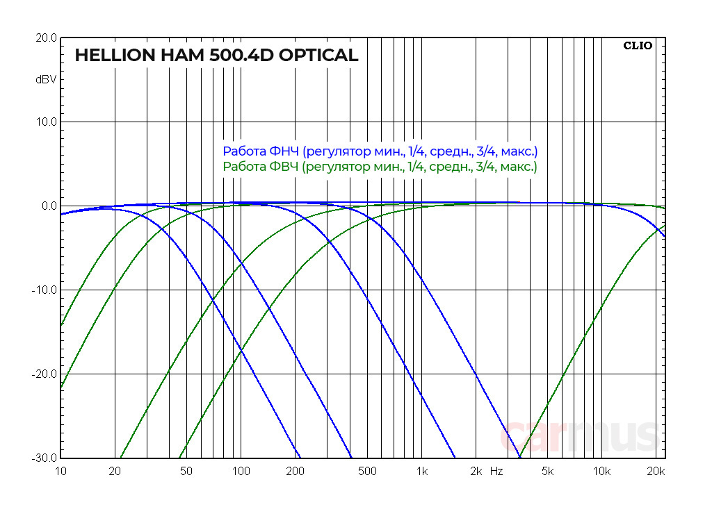 Начну с входной кроссоверной части. Фильтры верхних и нижних частот включаются отдельно и позволяют выставить почти какую угодно частоту среза – аж до 20 кГц.