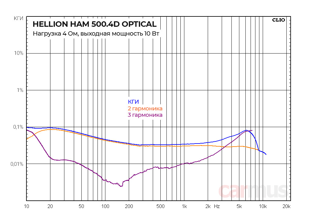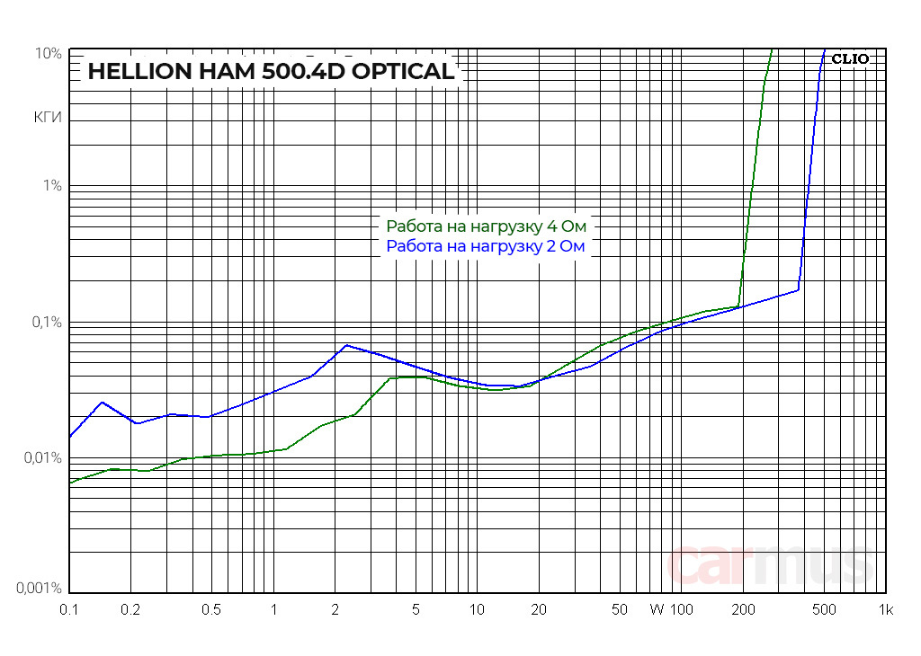 Мощностные параметры Hellion HAM500.4D (измерение на 1 кГц):
